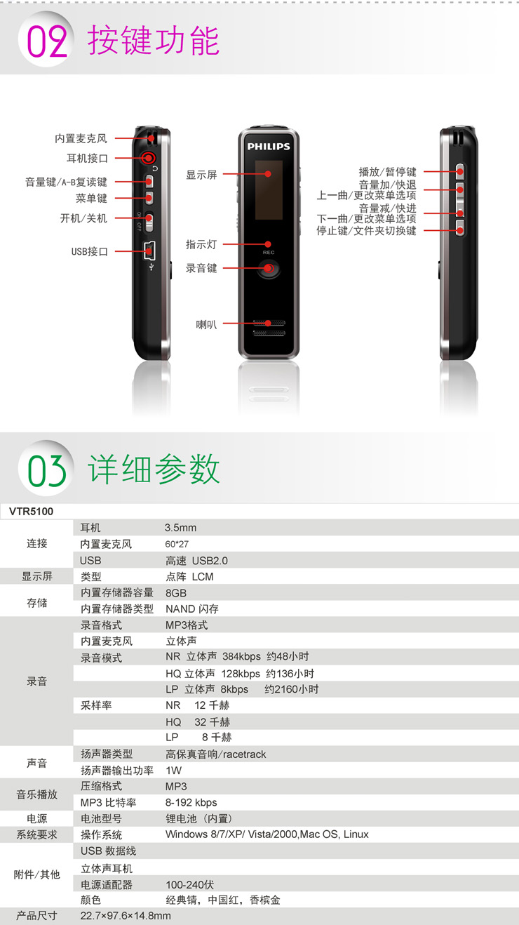 特性                                 時(shí)尚小巧,立體聲錄音!