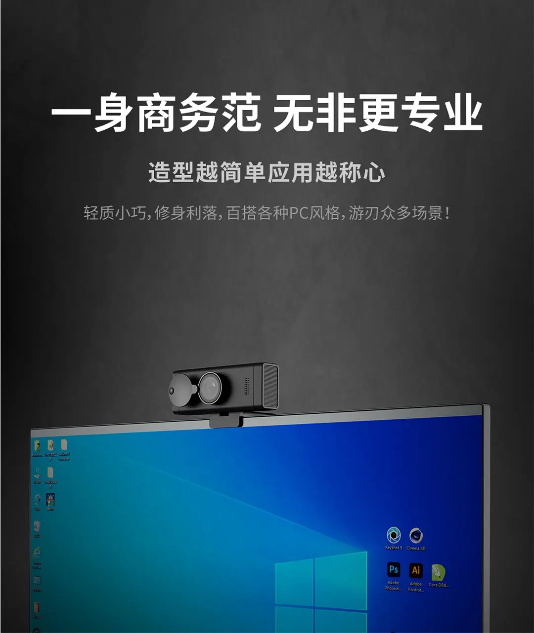 搭載雙專業級商務麥克風,800W有效像素,擁有鏡頭遮蓋設計,全高清光學鏡頭,擁有鏡頭遮蓋設計