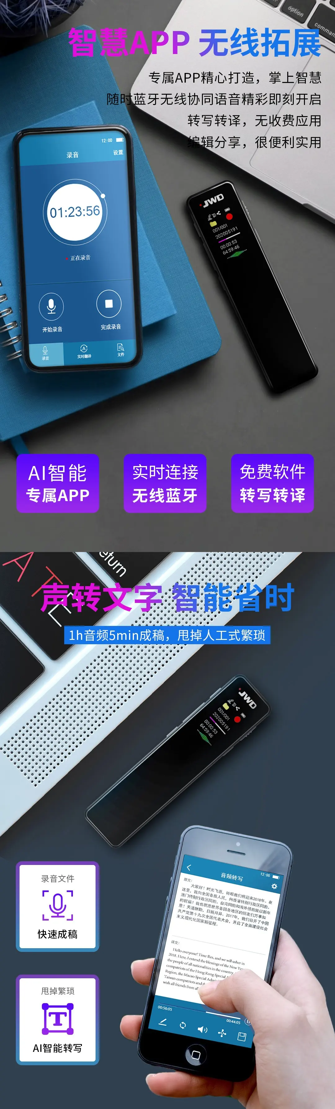 高清雙麥克風,搭載強勁外放,支持智能ZPP語音轉寫翻譯,彩屏可視