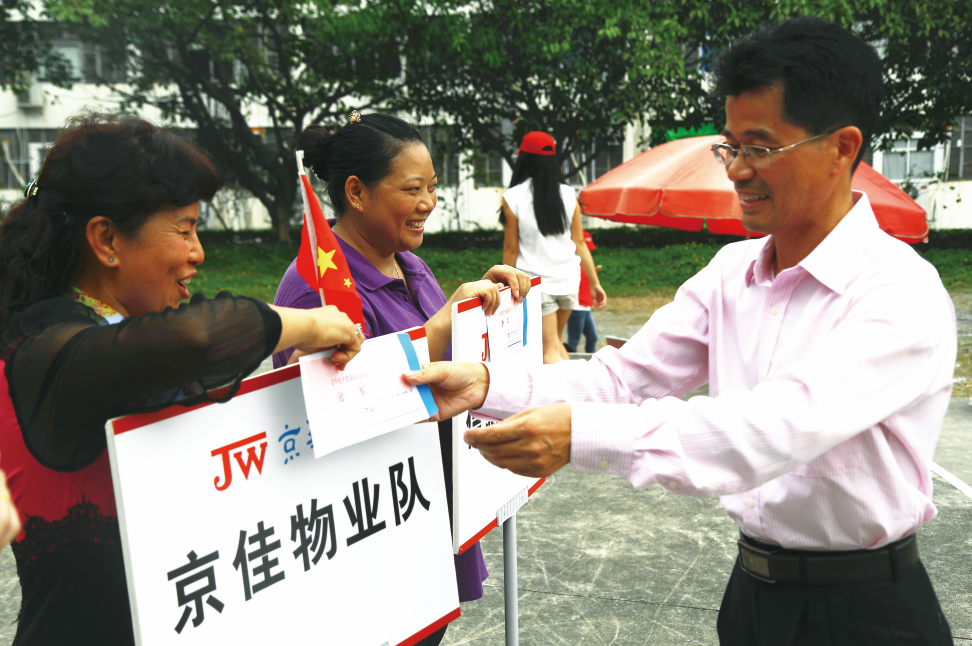 10月26日,最后一個比賽日。進行了拖拉機、同心協力、托運大氣球、拔河等4個項目的決賽。最為緊張刺激的是下午的拔河比賽。根據比賽規則每隊5男5女共10個人,采取3局兩勝的淘汰賽制。最后京佳物業隊與信息好運隊狹路相逢。兩隊展開了你爭我奪,雙方運動員都鉚足了勁,相互實力勢均力敵。在幾百名拉拉隊員震耳欲聾的加油聲中,雙方隊員互不相讓,寸土必爭。出現了長時間僵持不下的狀況。經過三局激烈的爭奪,最后京佳物業憑借牛高馬大、耐力超強的保安人員為主要陣容,一舉拿下了冠軍寶座。