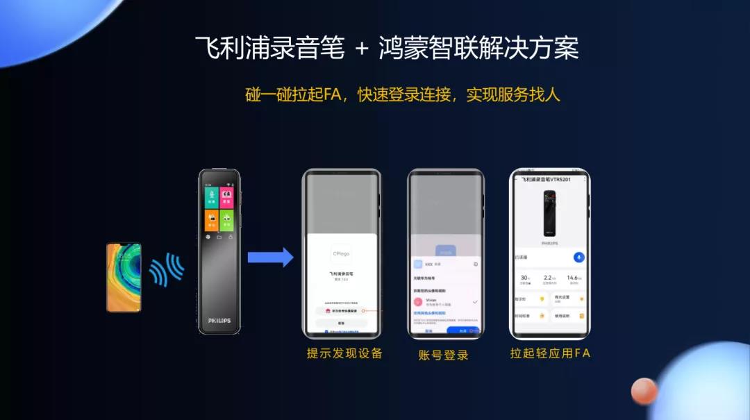 錄音筆作為一個專業的錄音設備,具有錄音清晰、遠距離錄音、智能降噪等專業功能,手機作為一個綜合的智能終端,具有屏幕大、管理文件更方便、傳輸分享文件更便利等特點。手機與錄音筆進行聯動,將極大提高高品質錄音的應用范圍。錄音筆+鴻蒙智聯解決方案,手機和錄音筆碰一碰,就可勁松實現互聯。極大降低了以往繁瑣的鏈接步驟。