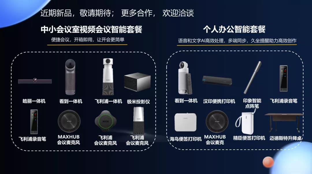 在峰會的最后,王賀介紹了京華&飛利浦最新的戰略合作品類:會議&個人視訊系列產品。我們相信與鴻蒙生態未來的合作中,音頻和視頻終端產品同樣重要。京華&飛利浦視訊設備軟硬一體解決方案,讓視訊會議更加簡單便捷。同時加入更多智能元素,對語音和文字進行AI高能處理。讓隔空會面,超越會面!